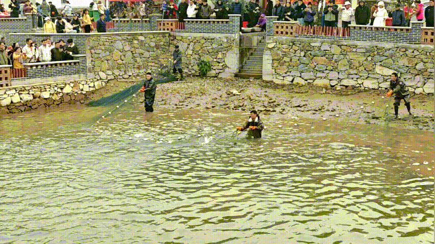 村民們拉動手中的漁網,平靜的水面頓時沸騰,魚兒打滾撒歡。圍觀人群爆發(fā)出陣陣歡呼,伴隨著攝影師們快門的咔嚓聲,這一鄉(xiāng)村傳統(tǒng)捕魚場景被定格在許多游客的手機屏幕中。