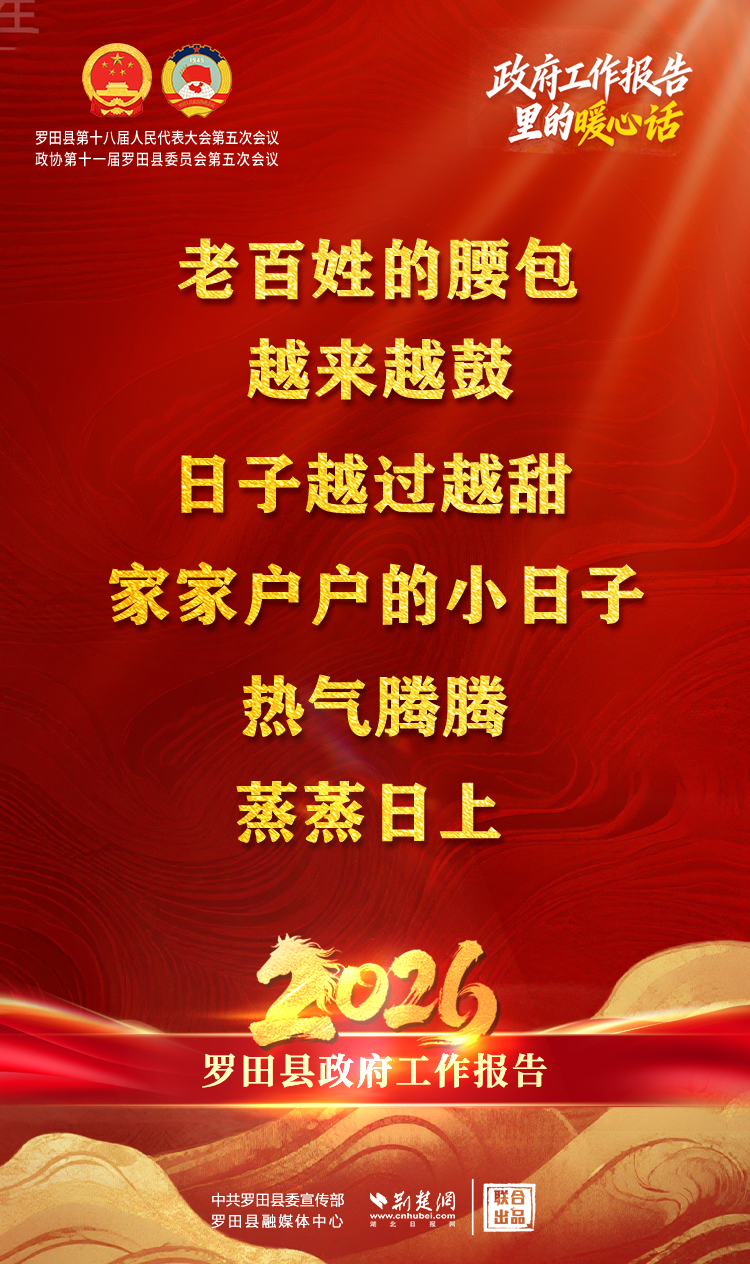 來自各條戰(zhàn)線的縣人大代表,肩負(fù)著人民的信任和重托,共議羅田發(fā)展新篇,共譜羅田奮進(jìn)華章。會(huì)上,羅田縣委副書記、代縣長(zhǎng)汪湘云代表縣人民政府向大會(huì)報(bào)告工作。報(bào)告中的這些話暖心提氣、催人奮進(jìn)。