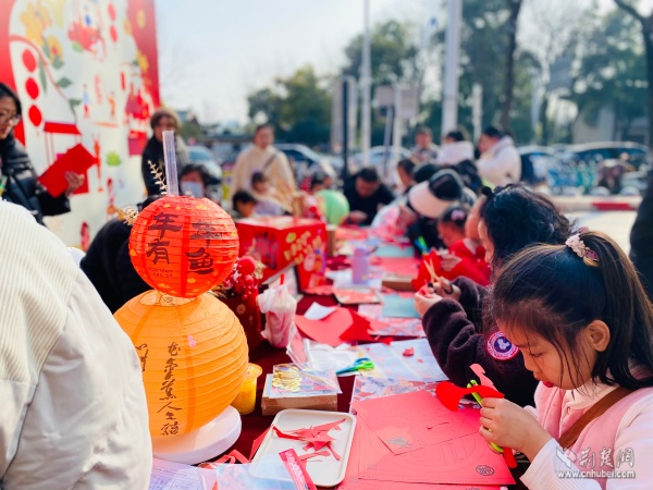 現(xiàn)場節(jié)日氛圍濃厚,文化氣息撲面而來。居民們不僅可以便捷選購年貨,還能免費參與多項文化體驗活動。書法老師帶領孩子們揮毫潑墨,一副副春聯(lián)和福字傳遞祝福;黃鶴書房設置的投壺游戲區(qū),讓市民在趣味中重溫傳統(tǒng)年俗;非遺手作課堂內(nèi),搖錢樹制作、剪窗花等技藝吸引眾人親手嘗試,近距離感受非遺魅力。市集匯聚30余家品牌商戶,商品涵蓋生鮮食品、休閑零食、健康禮品、文創(chuàng)產(chǎn)品等,充分滿足了居民“一站式”購齊年貨的多元需求,真正實現(xiàn)便民與惠民相統(tǒng)一。