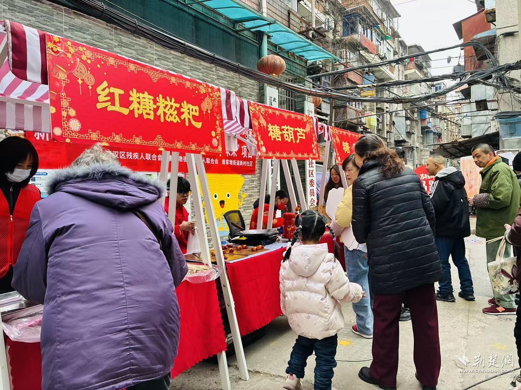當(dāng)天,新村社區(qū)舉辦“匠心傳承煥新彩 非遺助殘啟未來”項目系列活動之一——“非遺游園匯百藝 鄰里同心啟新章”。在江漢區(qū)殘疾人聯(lián)合會和唐家墩街道殘疾人聯(lián)合會的指導(dǎo)下,這場游園會以非遺為紐帶,把文化體驗、鄰里互動和助殘關(guān)懷融進一場“家門口的過年”。