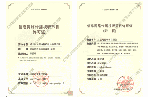 廣播電視節(jié)目制作經(jīng)營許可證(鄂)字第00011號(hào)