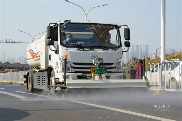 灑水車進行路面清洗作業(yè)。 通訊員供圖
