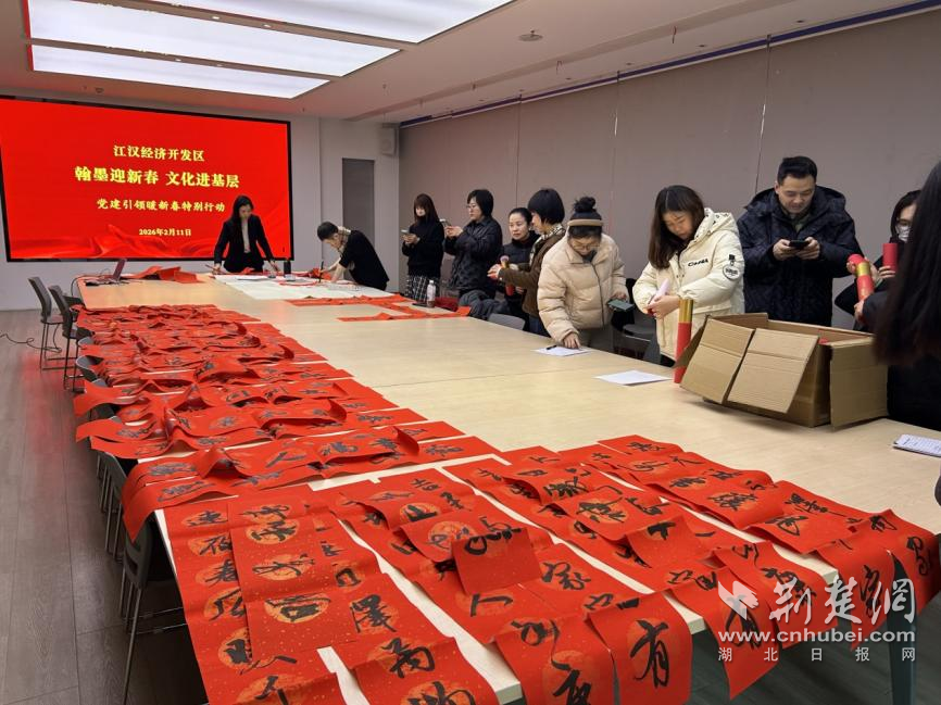 江漢經(jīng)濟(jì)開發(fā)區(qū)開展“翰墨迎新春 文化進(jìn)基層”黨建引領(lǐng)暖新春特別行動,邀請書法家現(xiàn)場書寫春聯(lián)和“?!弊?,為園區(qū)企業(yè)員工、新就業(yè)群體和流動黨員代表送上節(jié)日祝福,在傳承傳統(tǒng)文化中傳遞組織溫暖。