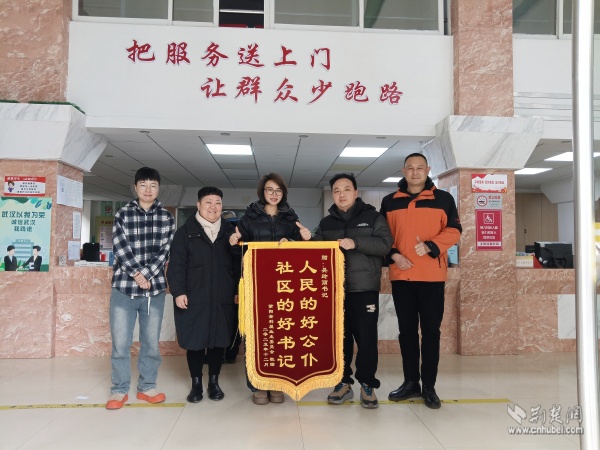 紫陽(yáng)金利屋小區(qū)業(yè)委會(huì)代表居民為社區(qū)送錦旗致謝。 通訊員供圖