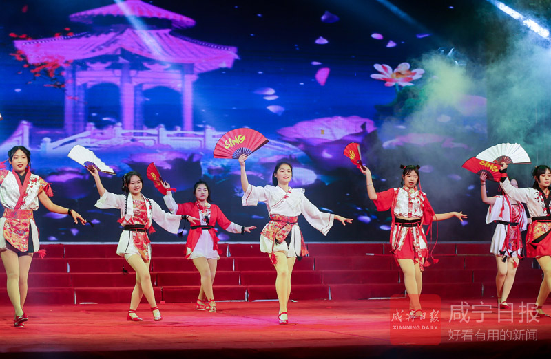元月3日晚,咸寧高中舉行主題為“永遠(yuǎn)跟黨走,共筑中國夢”2019年新年晚會,歌舞、小品、詩朗誦等17個節(jié)目均由該校師生自編自演,展示了咸高對美好未來的向往和積極進(jìn)取的精神面貌。圖為咸高學(xué)生正在表演舞蹈《寄明月》。
