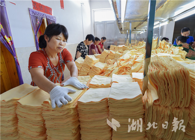 崇陽(yáng)縣肖嶺鄉(xiāng)白馬村扶貧車間。(湖北日?qǐng)?bào)全媒記者 陳勇 攝)