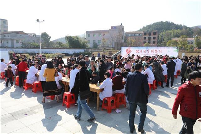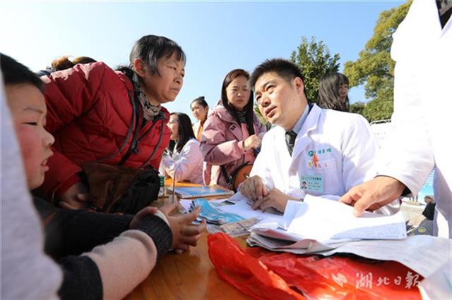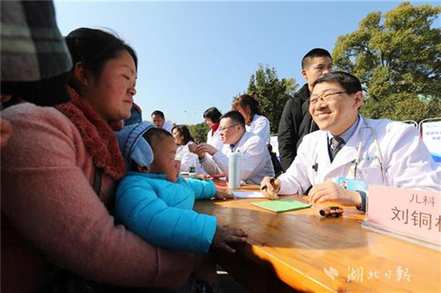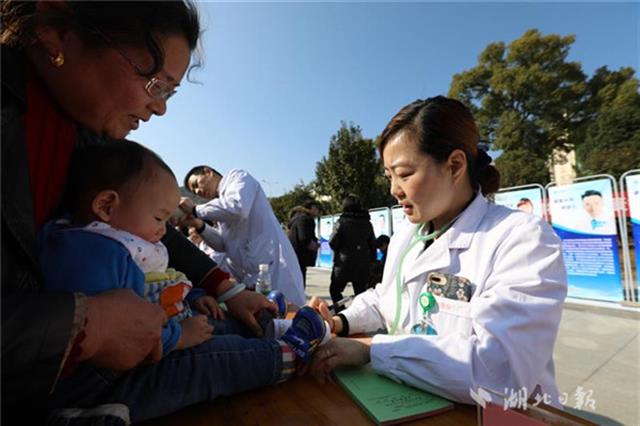 當(dāng)天下午,同濟(jì)醫(yī)院兒科、小兒外科、眼科、耳鼻咽喉科、心臟大血管外科等20位專家團(tuán)隊(duì)來到咸寧市咸安區(qū)高橋鎮(zhèn)文化廣場為當(dāng)?shù)厣倌陜和M(jìn)行義診,醫(yī)務(wù)人員為孩子們進(jìn)行了兒童常見疾病篩查,細(xì)致地為每一個孩子做好記錄,并向家長講解疾病預(yù)防和治療常識,讓孩子們健康平安過大年。