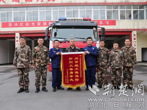 荊楚網客戶端-荊楚網消息(通訊員 朱燕林 徐聰)近日,山東陵縣車隊的車隊代表宋金忠先生不遠千里來到湖北省咸寧赤壁市消防大隊,將一面印有“為百姓不懼艱險,撲烈火奮勇爭先”的錦旗親手送到消防指戰(zhàn)員的手上,專程感謝消防指戰(zhàn)員于3月3日在京港澳高速湖北赤壁收費站高速出口處奮力撲滅他貨車起火的感激之情,并向辛勤奮戰(zhàn)在防、滅火第一線的全體消防指戰(zhàn)員表示崇高的敬意。