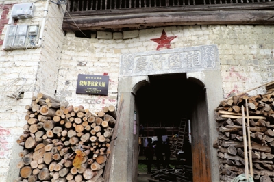 在該村5組饒獅壟包家,有一處老宅格外引人注目。一顆碩大的紅五星下面的門楣上,鐫刻“龍圖衍慶”四個(gè)碩大的繁體字。屋子的門窗、樓閣上雕滿精致的圖案,仔細(xì)辨認(rèn),可以看出是古裝戲文。
