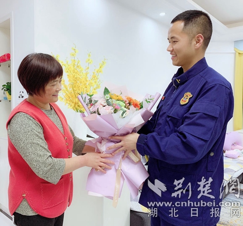 “媽媽,這些年您辛苦了,感謝您的養(yǎng)育、教育之恩,快到母親節(jié)了,在這個(gè)特殊的日子里,今年能親手送上一束鮮花您,希望您天天開心貌美如花……”母親節(jié)即將到來之際,咸寧特勤中隊(duì)副中隊(duì)長(zhǎng)張衡出差時(shí)利用午休時(shí)間回家送上一份母親節(jié)的禮物。