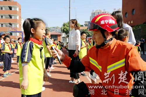 圖為師生參觀消防裝備器材現(xiàn)場。 官易洲攝