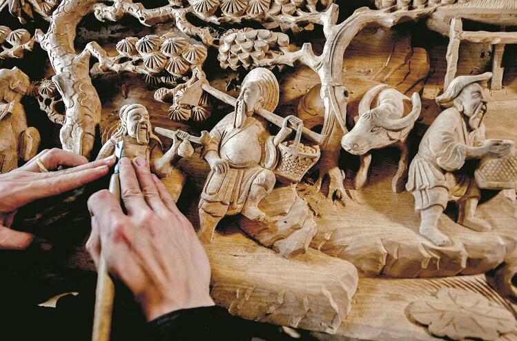 2014年,通山木雕成為了國家非物質(zhì)文化遺產(chǎn)代表性項目,成希被評為木雕文化第五代傳承人?!巴ㄉ降哪镜袼囆g有‘木板上的刺繡’之稱?!背上Uf,通山木雕題材十分廣泛,每一個人物、場景都有一個故事。他經(jīng)常獨自到山里古民居里參觀學習領悟,“要讓每雕刻的一刀都會唱歌!”“精雕細琢,出神入化!”非物質(zhì)文化遺產(chǎn)保護中心主任謝志兵介紹,2017年,成希在成都第六屆國際非遺節(jié)上獲得“新生代手藝之星”稱號。去年,他獲得了第二屆“荊楚工匠”稱號。