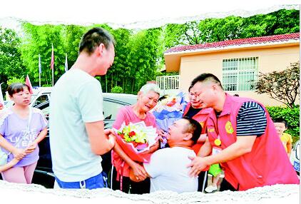 6月29日清晨7時(shí)許,一輛轎車駛出京港澳高速咸寧泉口收費(fèi)站,緩緩?fù)O?。在義工的攙扶下,一位白發(fā)婆婆顫顫巍巍地下車。37歲的余軍雙腿跪下,抱著她痛哭起來:“媽,你上哪兒去了,怎么才回來……”在場(chǎng)的親人和義工們無(wú)不潸然淚下。