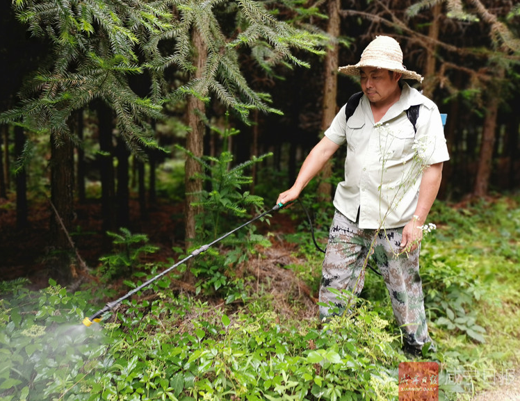 “現(xiàn)在正是噴藥的最好時機,能夠有效抑制雜草生長,讓樹木正常生長,還能防止突發(fā)山火時火勢蔓延過快!”6月24日,雨過天晴,在通山縣黃沙鋪鎮(zhèn)下陳村的一片林子里,王能新邊噴灑農藥邊說。