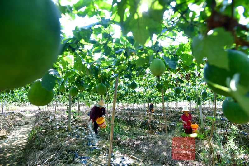 8月20日,赤壁市茶庵嶺鎮(zhèn)云臺山村豐盈瓜蔞種植農(nóng)業(yè)開發(fā)有限公司基地,當(dāng)?shù)剞r(nóng)戶正在施肥。
