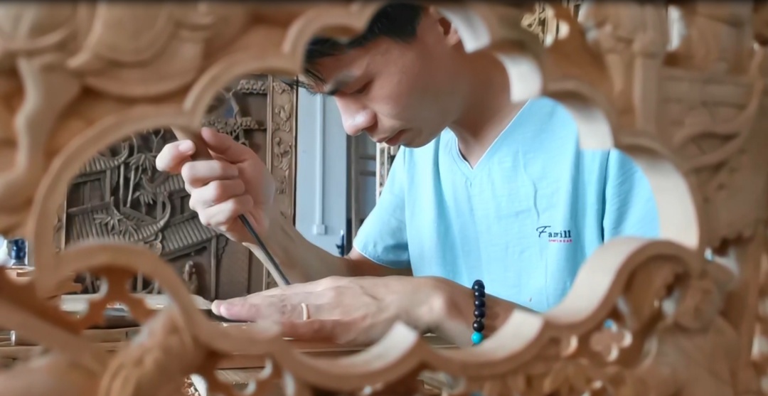 這些作品都出自一人之手,他叫成希,剛剛30出頭的他從事木雕手藝已近20余年。根據(jù)成氏家譜記載,成家早從高祖父開始便以木雕為業(yè)。傳到成希這一輩,已是第五代。