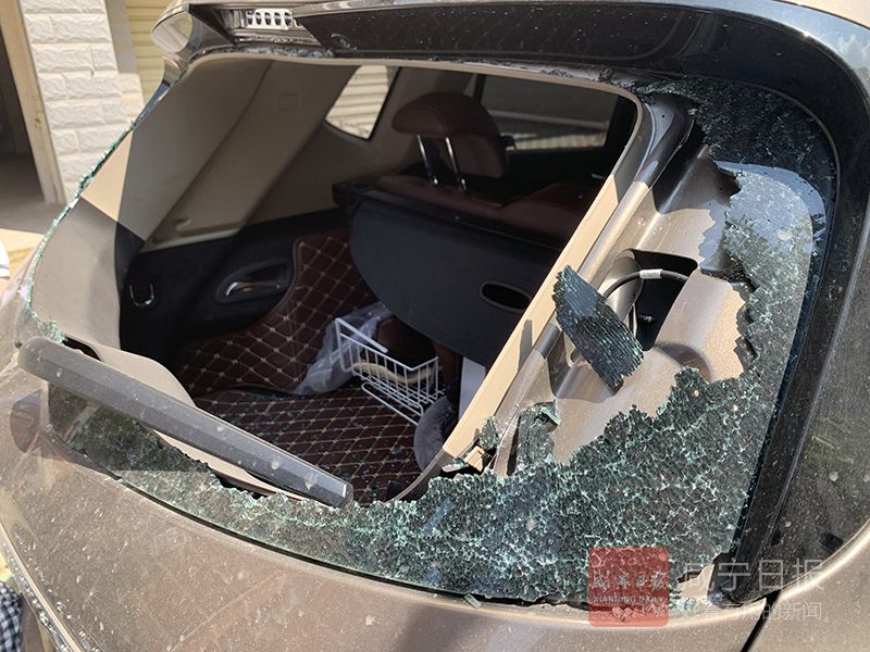 被砸中的其中一輛車主楊女士告訴記者,今天早上,她下樓看到車頂尾部和后擋風(fēng)玻璃受損,玻璃已經(jīng)完全破碎。她進(jìn)一步觀察發(fā)現(xiàn),一把已經(jīng)損壞的木椅掉落在另一輛車前擋風(fēng)玻璃上,該車的引擎蓋和前擋風(fēng)玻璃有明顯刮痕。
