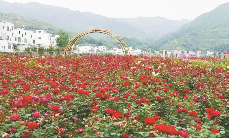 走進月季莊園,20余萬株月季有的含苞待放,有的已迎風綻放,喜迎八方來客。昔日的貧困村蛻變?yōu)槭痉洞?、明星村?/p>