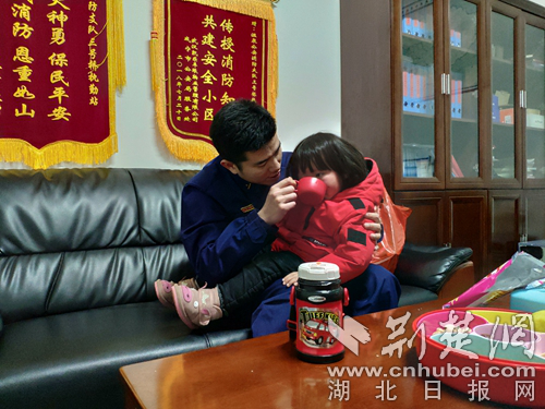 消防員堅守崗位家人來隊陪值班。(通訊員 徐聰 攝)