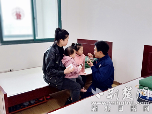 溫泉大隊參謀 喻劍溫泉大隊參謀喻劍——春節(jié)期間堅持駐守在自己的崗位上,未能回到家中和親人團(tuán)聚。2月8日,年幼的女兒想念父親,在和他的視頻中哭泣,詢問爸爸為什么還不回家,喻參謀不忍心欺騙孩子,只能暗暗傷心。到了當(dāng)晚,妻子攜女兒來到三號橋執(zhí)勤站探望駐守在崗的他,給他帶來了一個驚喜,相機(jī)記錄下這幅溫馨和諧、父慈子孝的親情畫卷。