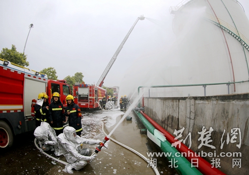 圖為消防員處置化工災(zāi)害事故應(yīng)急演練現(xiàn)場。通訊員朱燕林?jǐn)z