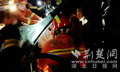 荊楚網(wǎng)消息(通訊員 劉麗娜 曾水生)6月2日22時51分,湖北省咸寧市崇陽縣消防救援大隊接到報警稱,石城鎮(zhèn)黃龍村小車碰撞,有人員被困,情況十分危急。崇陽縣消防救援中隊接到報警后迅速出動2輛消防車、10名消防員趕赴現(xiàn)場救援。