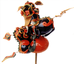 俗稱吹糖,在湖北遍及全省,尤以天門最為突出。糖塑之所以贏得人們的喜愛,是因為它獨具特色:1、原料可塑性強:麥芽糖是糖塑的主要原料,加熱后變軟,比面塑更具可塑性,既可吹成薄而亮的各類造型,又可拉成粗細(xì)不同的糖絲。捏成不同形狀的配件,易粘…… 詳細(xì)